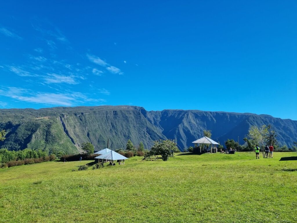 Panorama unique sur le village de Grand Bassin, accessible uniquement à pied par un sentier pittoresque.